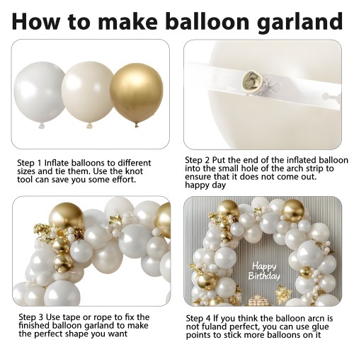 - 【High-quality Materials】: This pearl white gold balloons arch kit are made of high-quality latex material, which is thicker than other balloons, not easy to burst and safe for children. The pearl sand white gold balloon arch kit is able to stay inflated for a long time if you tie them tight.