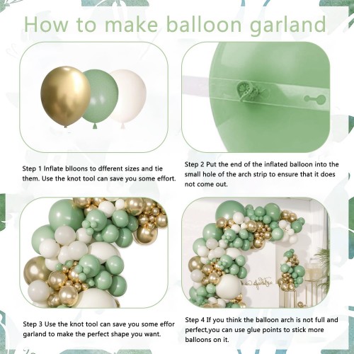- 【Easy to Assemble】: You can easily inflate your sage green and gold balloons with an air pump (Please no more than 90% inflated), easily assemble different colors and sizes of balloons together using the ribbons and stickers included in the package. You can enjoy DIY with your family, it will be a fun family craft!