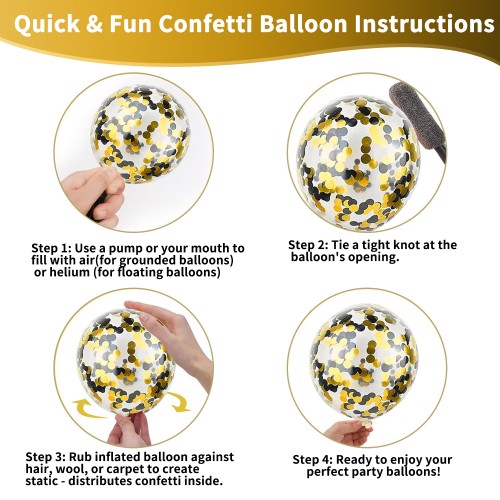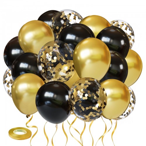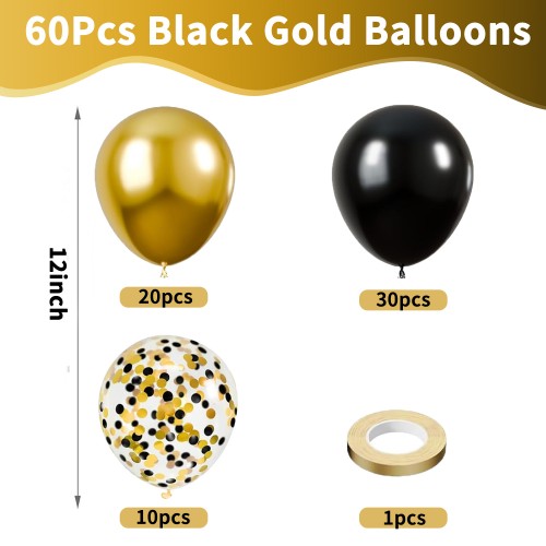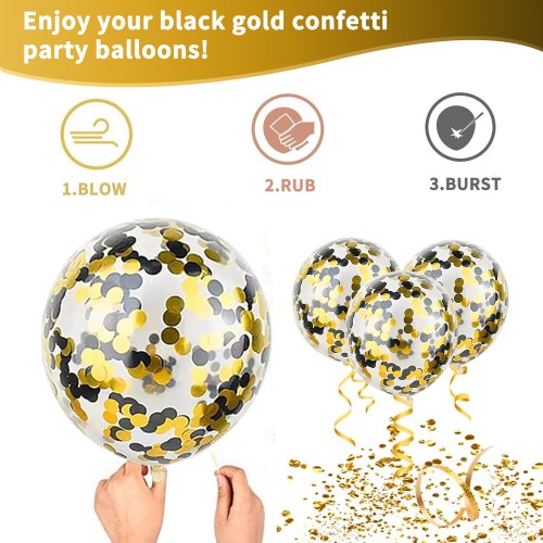 - 【Black and Gold Balloons】: Black balloons:12 inch x 30, metallic gold balloons:12 inch x 20, clear ballons with black and gold confetti:12 inch x 10, one metallic gold ribbon. Offering you a good choice for making nice indoor or outdoor decoration, to create more joyful time for families and friends.